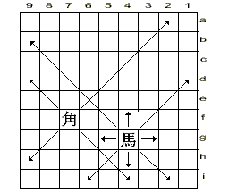 | Как и его шахматный аналог, конь ходит буквой Г, но только вперед и без возможности отступления. Т.е. ход коня составляет одно поле по вертикали вперёд, затем одно поле по диагонали вправо или влево (два возможных хода). Это единственная фигура, которая может перепрыгивать через стоящие на пути фигуры. Достигнув вражеского лагеря, может быть превращен в золотого генерала. | ||