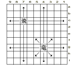 | Ладья ходит по горизонтали и по вертикали на любое число полей, не занятых другими фигурами (аналогично шахматной Ладье). Достигнув вражеского лагеря, может быть превращена в короля-дракона – фигуру, которая, сохраняя возможности Ладьи, дополнительно может ходить на одно поле по диагонали в любом направлении. | ||